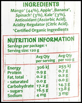 Mango* (37%), Apple*, Banana*, Spinach* (6%), Kale* (3%), Vitamin C, Acidity Regulator (Citric Acid).