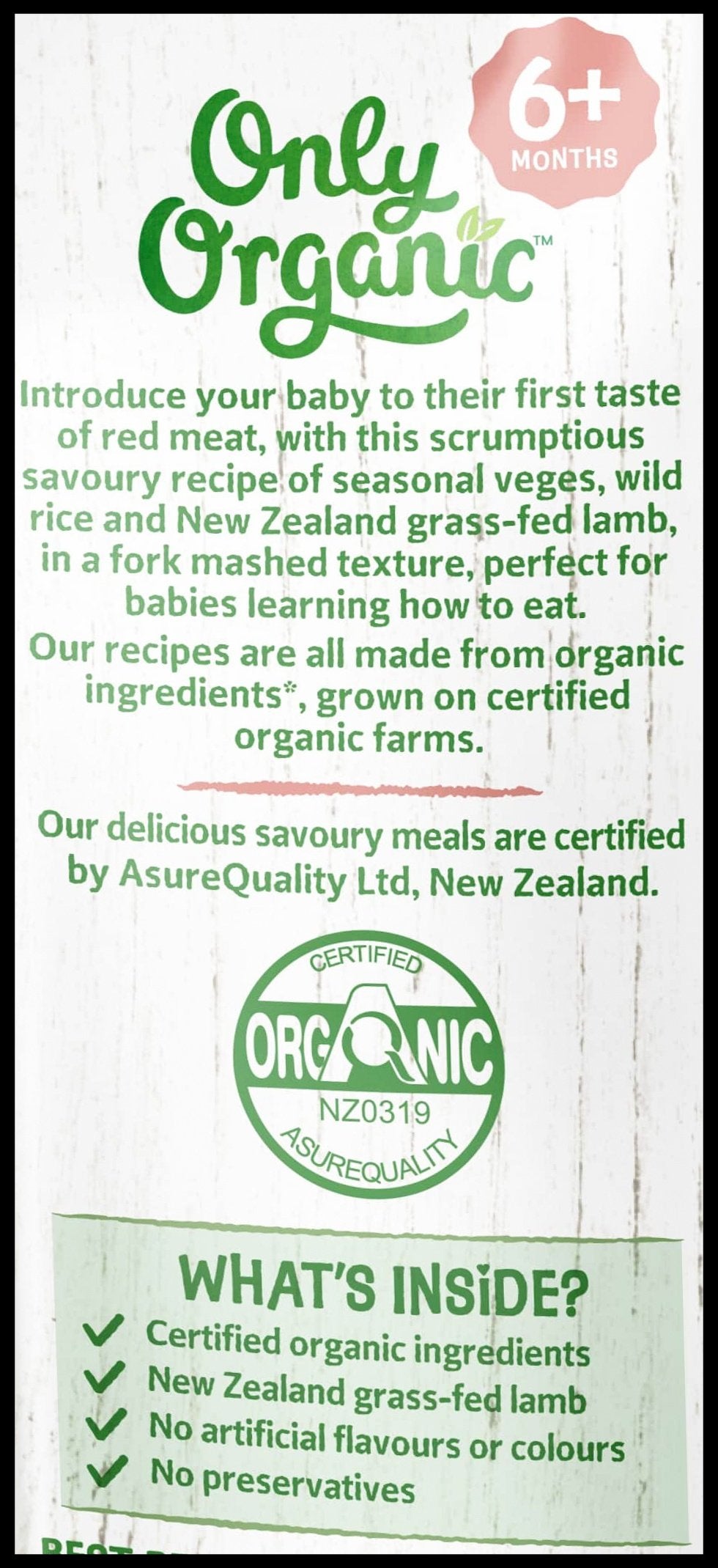 Only Organic Baby Food 6+ months - Wild Rice Risotto & Spring Lamb (120g)