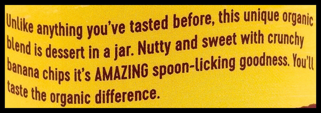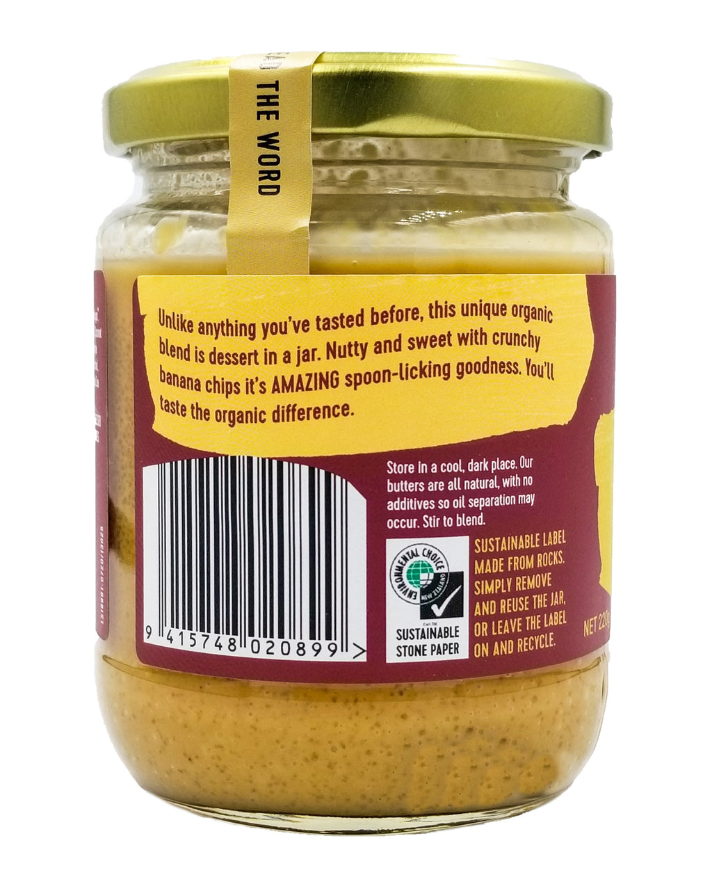 - Unlike anything you’ve tasted before, this unique blend is dessert in a jar. Nutty and sweet with crunchy banana chips it’s amazing spoon-licking goodness. You’ll taste the organic difference.
