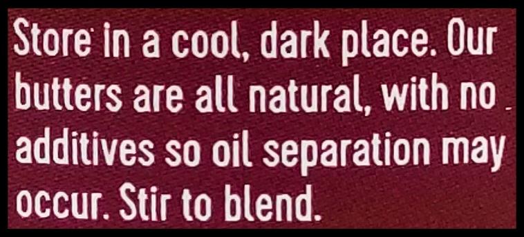 Store in a cool, dark place. Our butters are all natural, with no additives so oil separation may occur. Stir to blend.