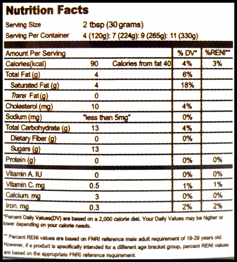 100% Pure and Natural Coconut Milk, Muscovado Sugar.