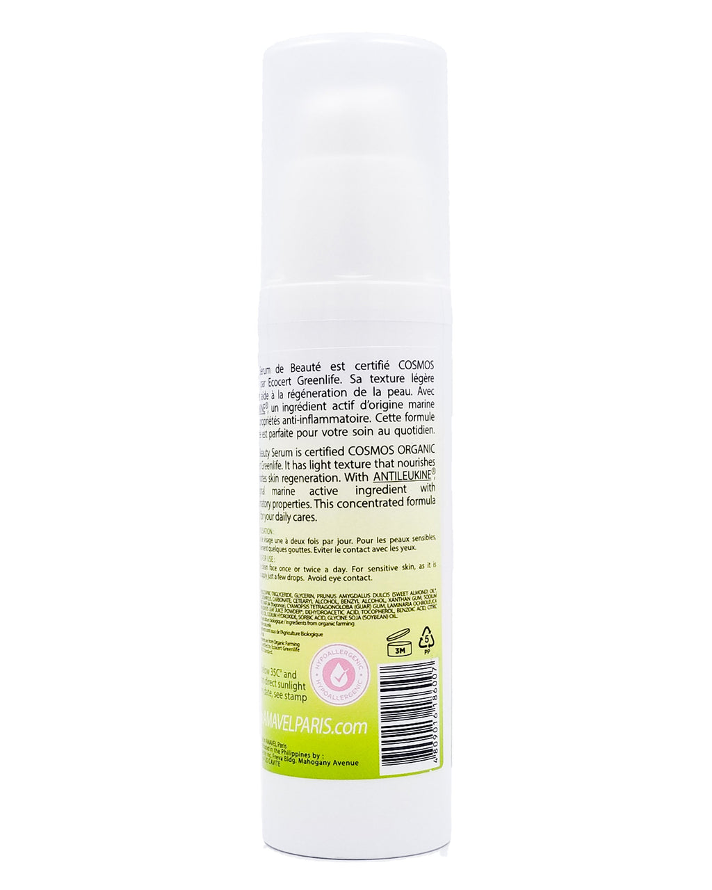 - AMAVEL Beauty Serum is certified COSMOS ORGANIC by Ecocert Greenlife.