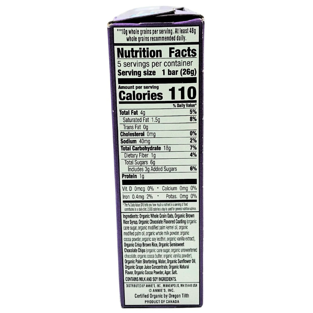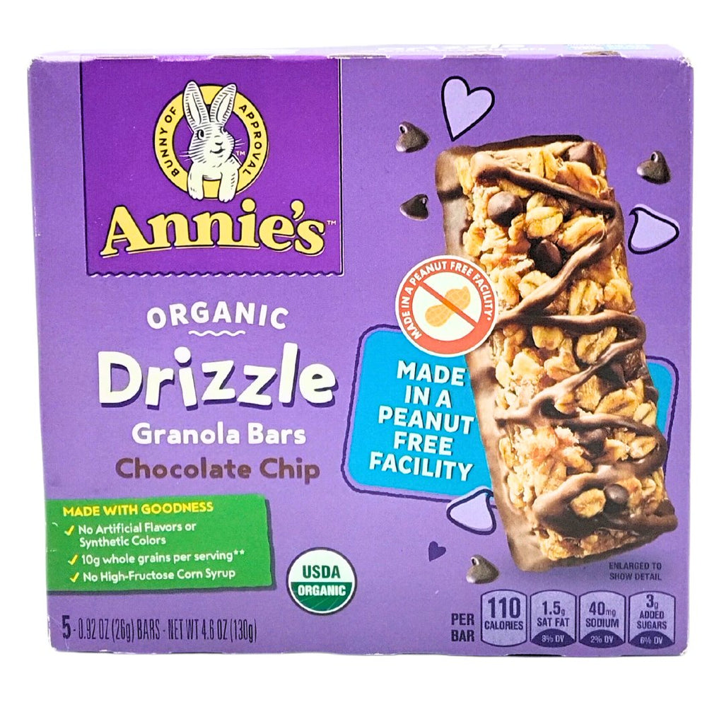 - Chewy with a chocolatey coating and great on the go, Annie's Organic Drizzle Chocolate Chip Granola Bars bring yumminess that kids and adults will love.