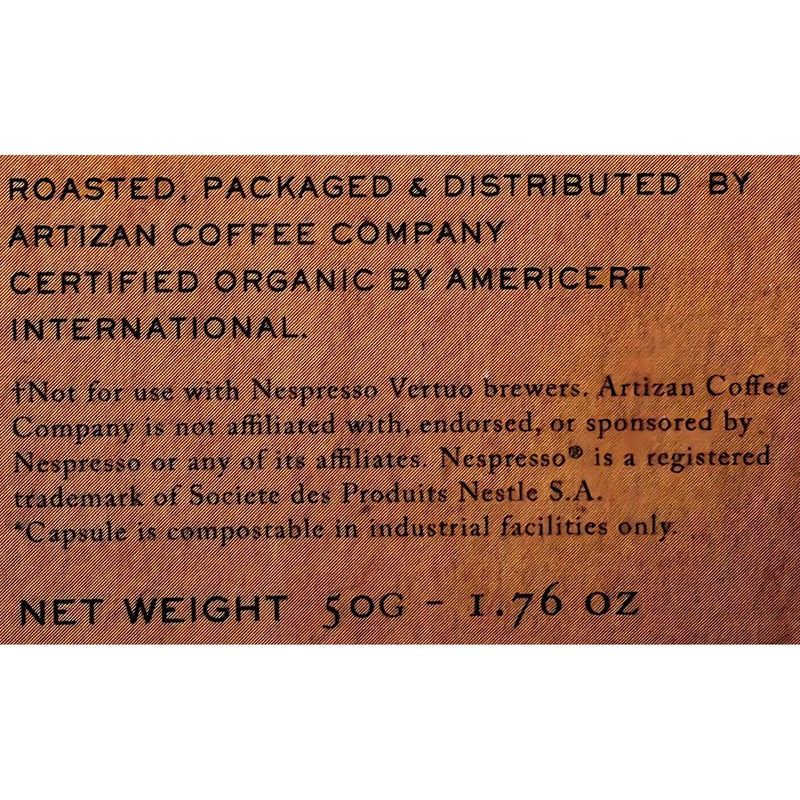Artizan Organic Nespresso Coffee Pods - Cuba Mia Espresso Blend Decaffeinated (10 pods)