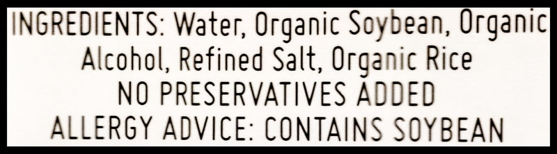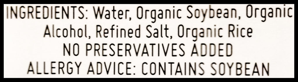 Water, Organic soybean, Organic alcohol, Refined salt, Organic rice.