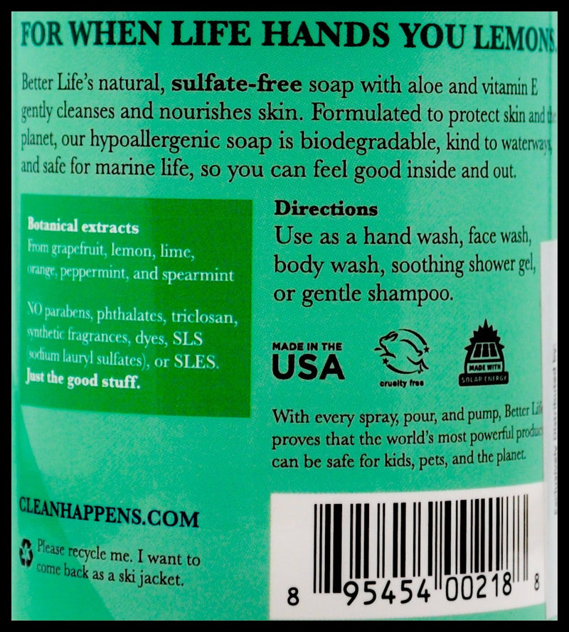 Better Life Natural Hand and Body Soap - Citrus Mint (354ml)