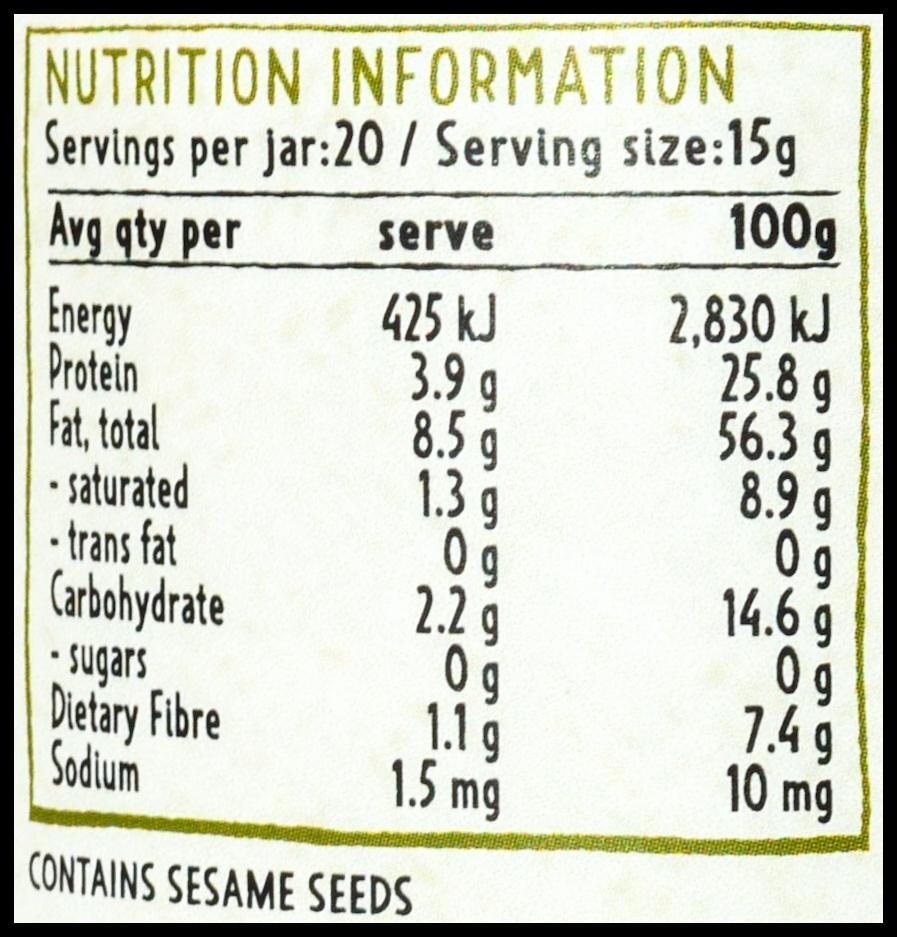 Allergens:  Contains Sesame Seeds.
