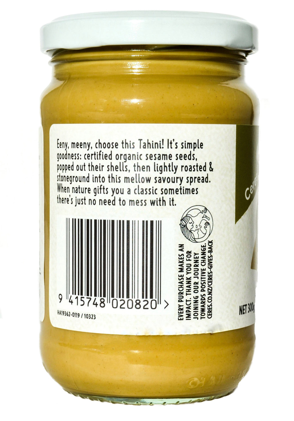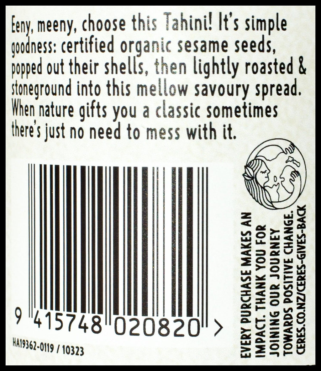 • At Ceres Organics we like things clean and simple. So this jar of goodness is made from certified organic sesame seeds that are lightly roasted, then stoneground into a rich savory spread. That’s it! Straight up goodness.
