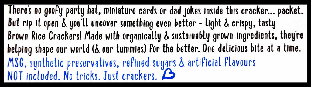 - No nasty stuff like MSG, artificial flavours, synthetic preservatives or refined sugars.