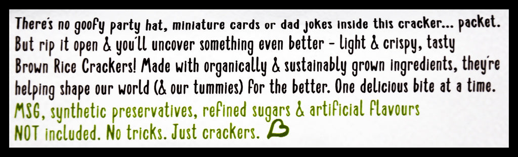 - No nasty stuff like MSG, artificial flavours, synthetic preservatives or refined sugars.