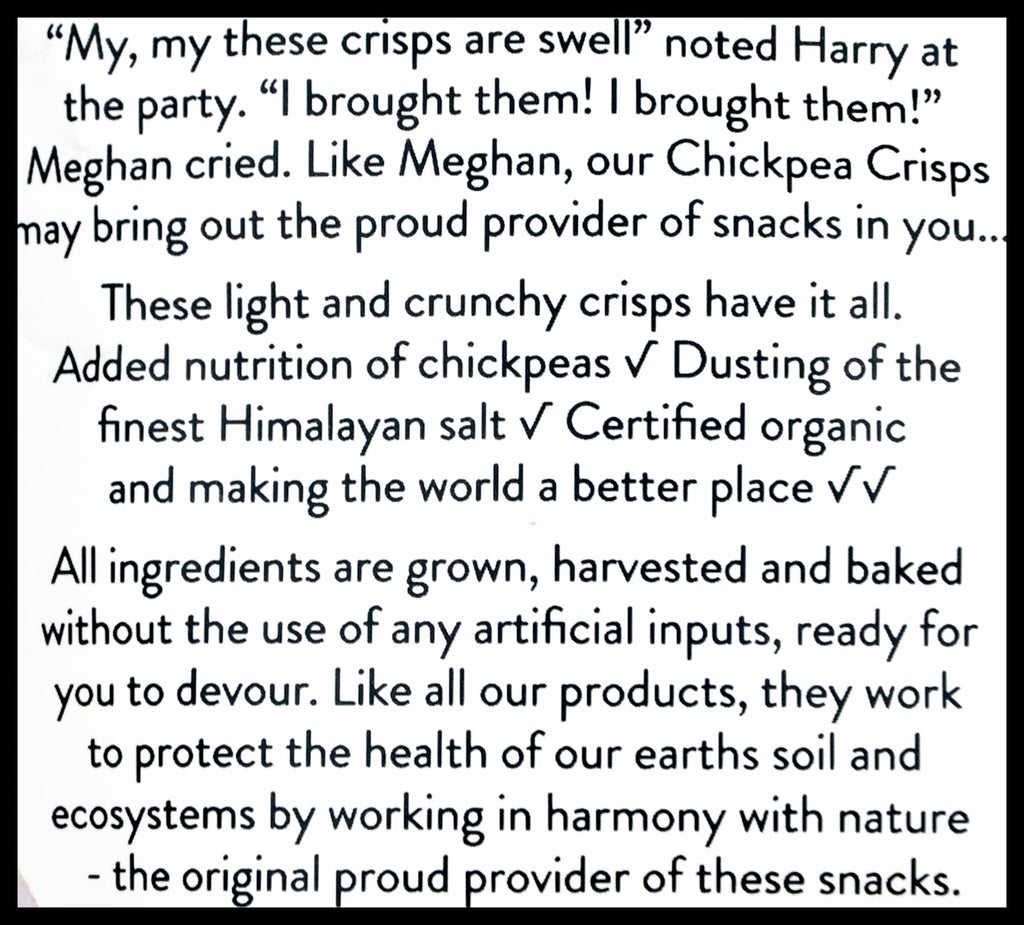 - At Ceres Organics we believe in using only ‘real’ plant-based ingredients that deliver on taste, while caring for our bodies and the planet too. These light and crunchy crisps have it all. Added nutrition of chickpeas. Dusting of the