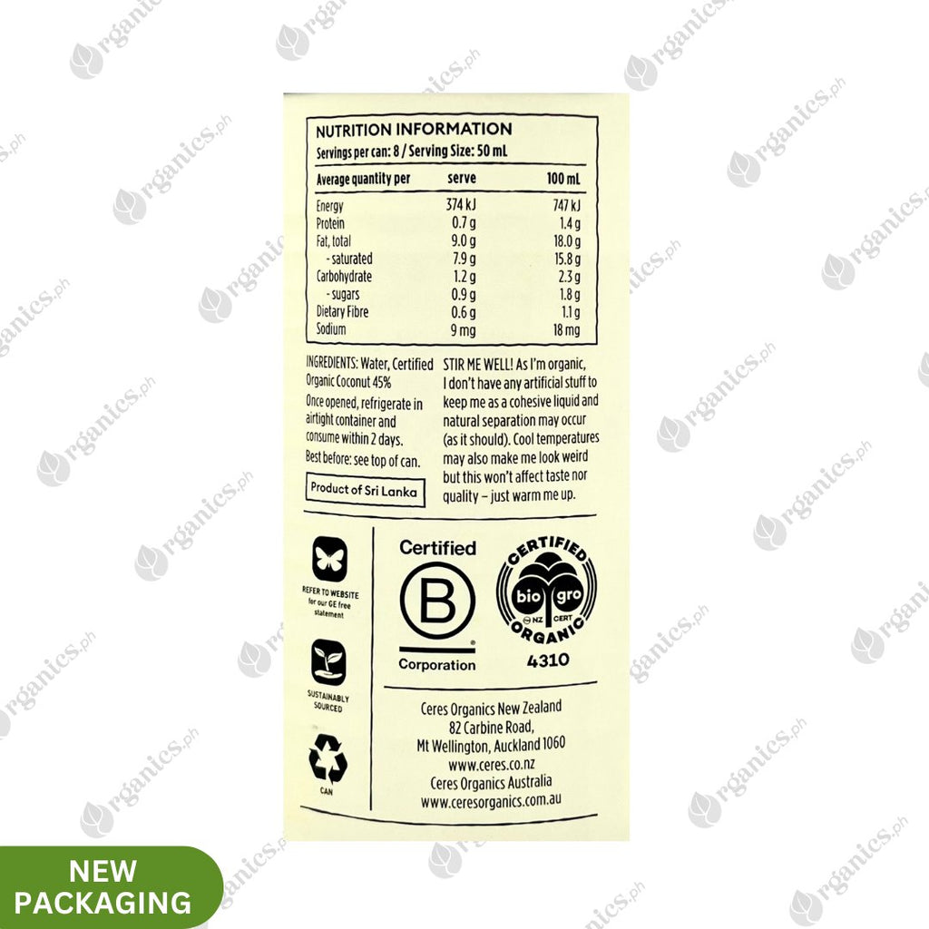 Ceres Organics Coconut Milk (Canned) (400ml)
