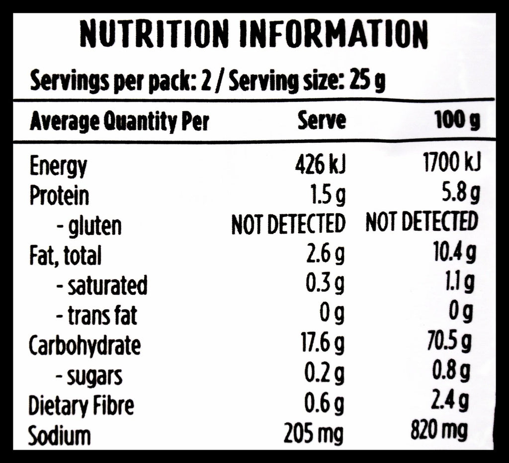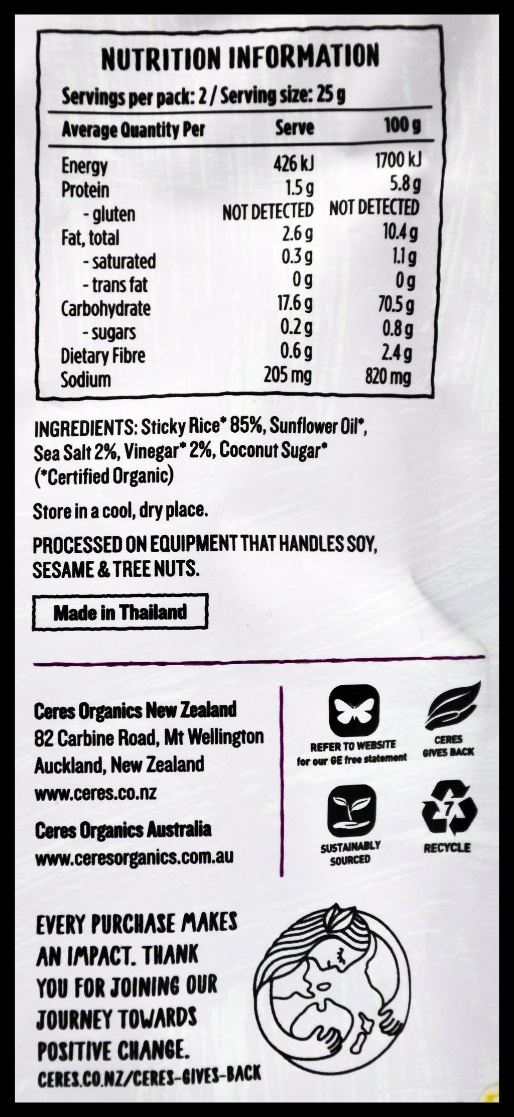 Sticky Rice*, Sunflower Oil*, Sea Salt, Vinegar*, Coconut Sugar* (*Certified Organic).