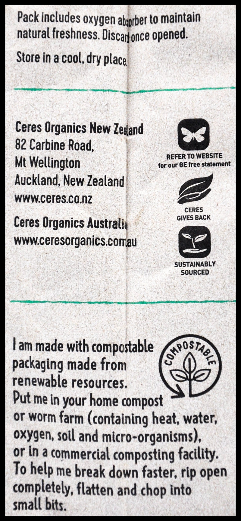 - Ceres Organics products are NOT Genetically Engineered (GE). They have a very strict GE Free policy.