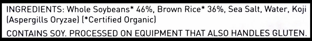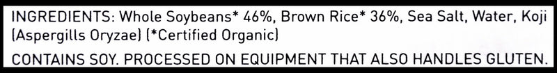 Whole Soybeans* 46%, Brown Rice* 36%, Sea Salt, Water, Koji (Aspergillus Oryzae) (*Certified Organic).