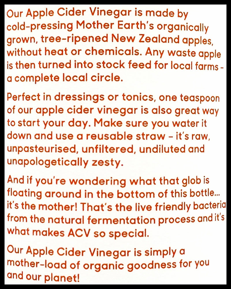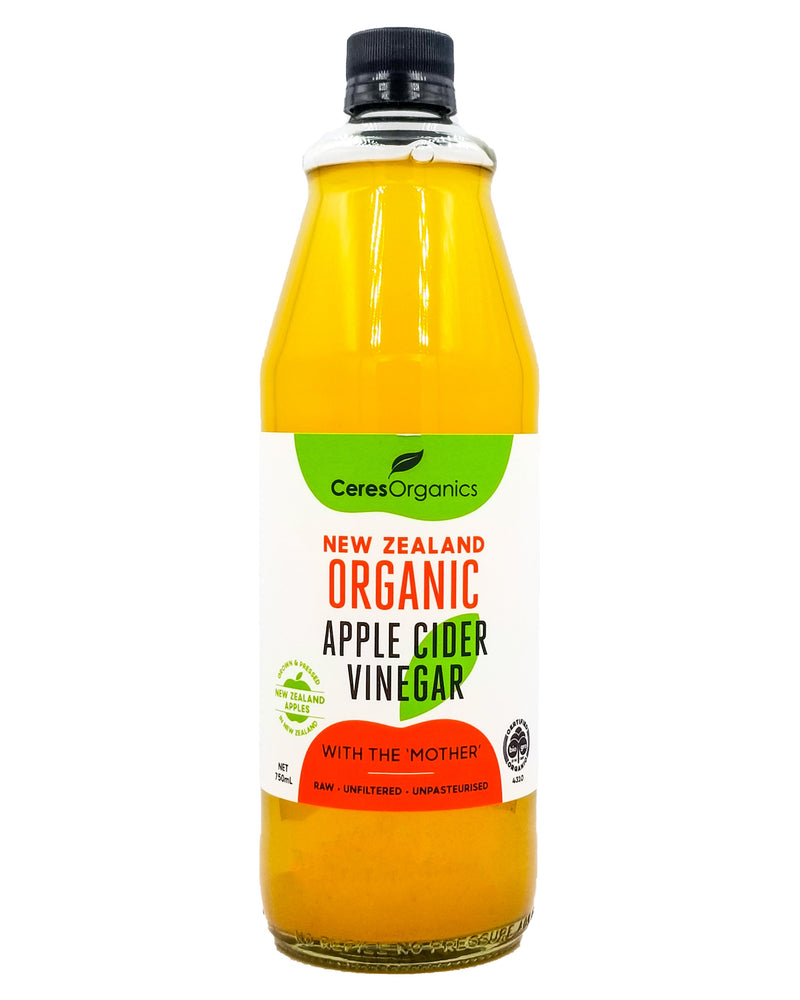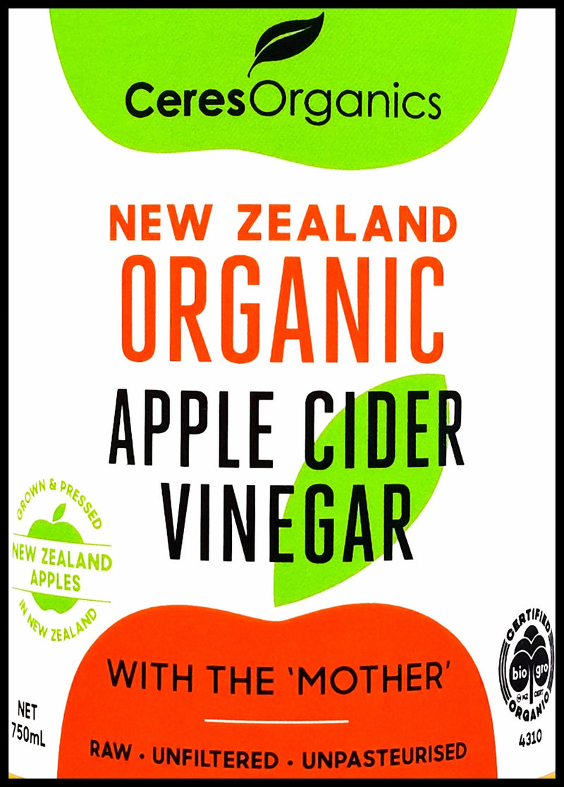 - At Ceres Organics we like to keep things pure and simple, that’s why our RAW Apple Cider Vinegar is just that! It’s cold-pressed from organically grown, tree-ripened ‘old world’ New Zealand apples, without heat or chemicals. It’s then naturally fermented to preserve the ‘Mother’ of the vinegar – live friendly bacteria. Unpasteurized, unfiltered and undiluted, our RAW Apple Cider Vinegar is packed with natural zesty goodness, with none of the ‘nasty’ stuff.