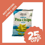 Green Pea* 50%, Corn*, Sunflower Oil*, Seasoning (Salt, Potassium Chloride, Natural Flavour, Yeast Extract, Onion) (*Certified Organic)