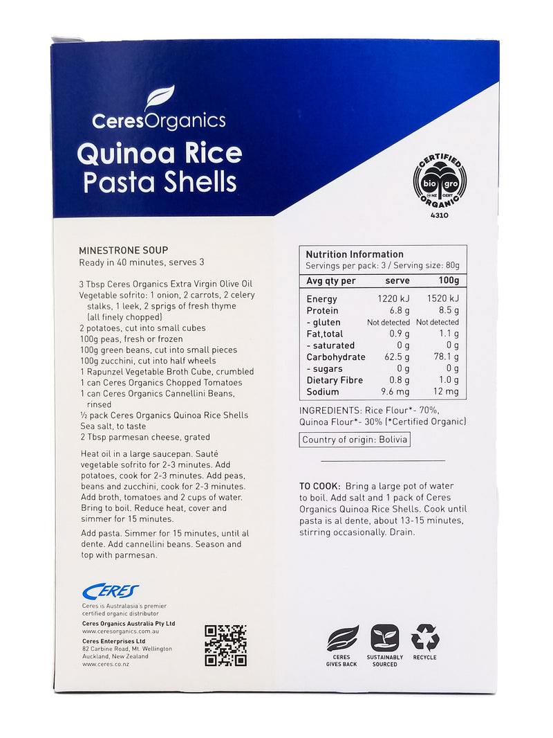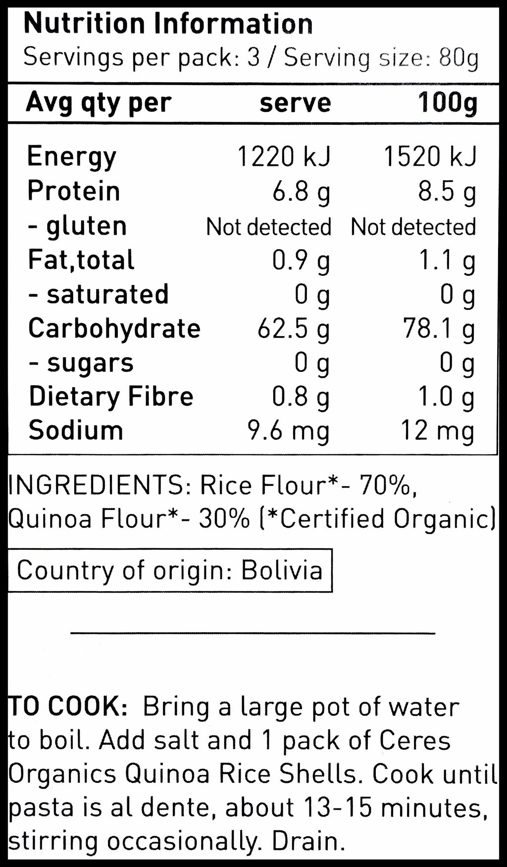 Ceres Organics Quinoa Rice Pasta - Shells (250g)