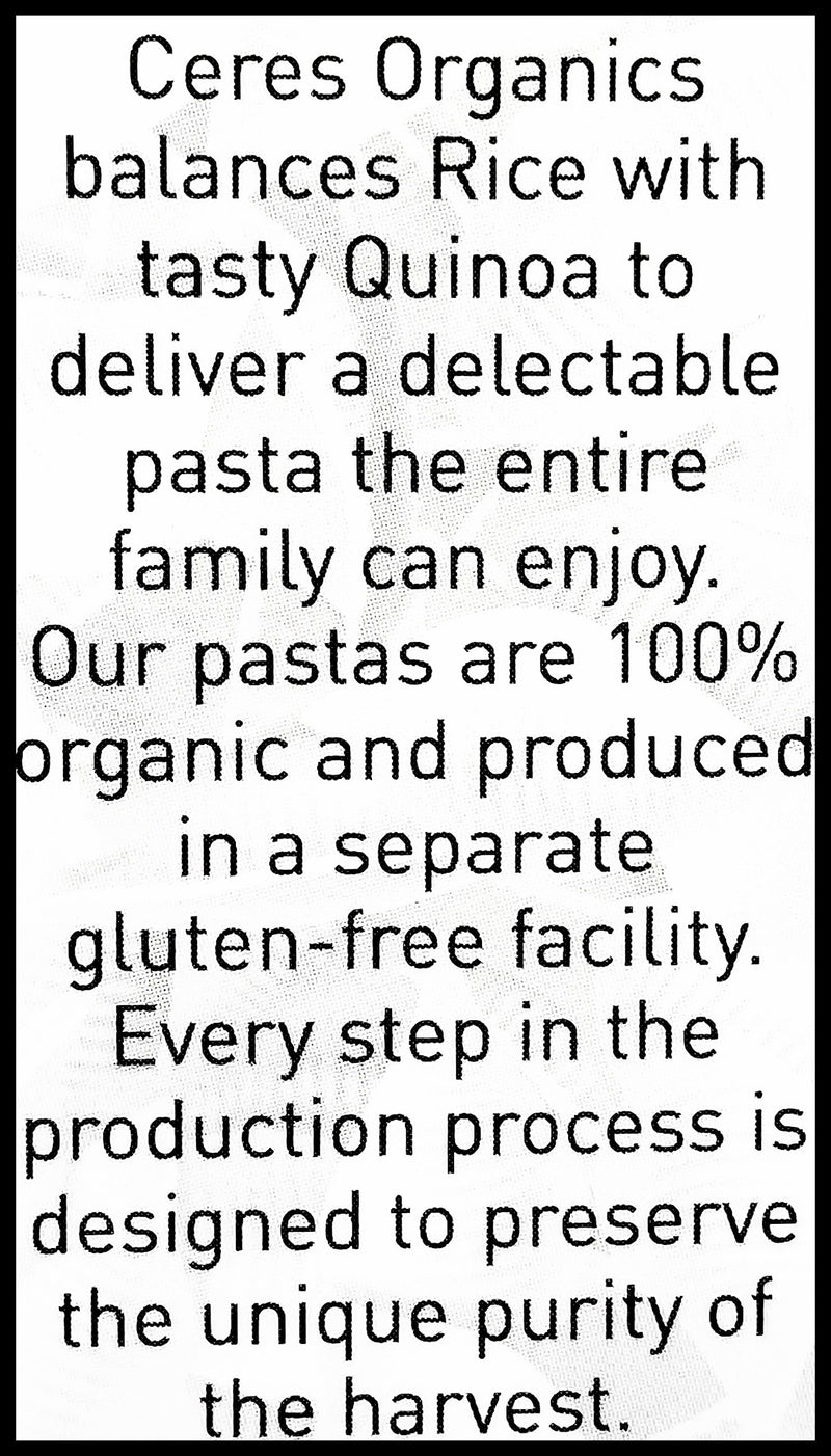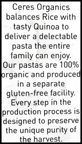 - Ceres Organics balances rice with tasty Quinoa to deliver a delectable pasta the entire family can enjoy.