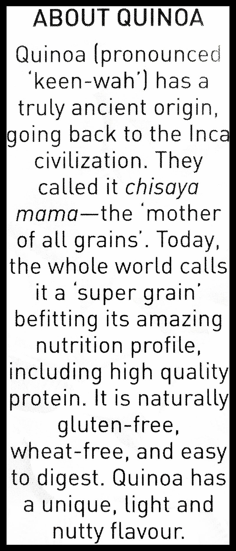 - Quinoa is a balanced amino acid source of high quality protein. It is naturally gluten-free, wheat-free, easy to digest and is among the least allergenic foods available. Quinoa has a light, nutty, delicious flavour all its own.
