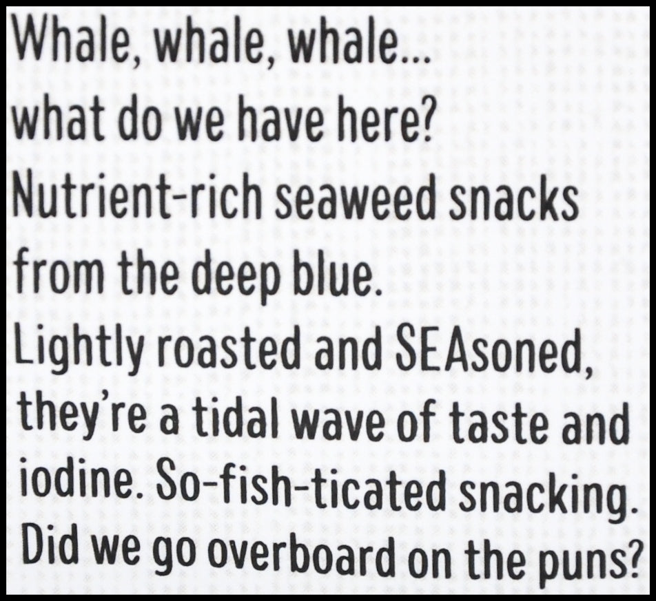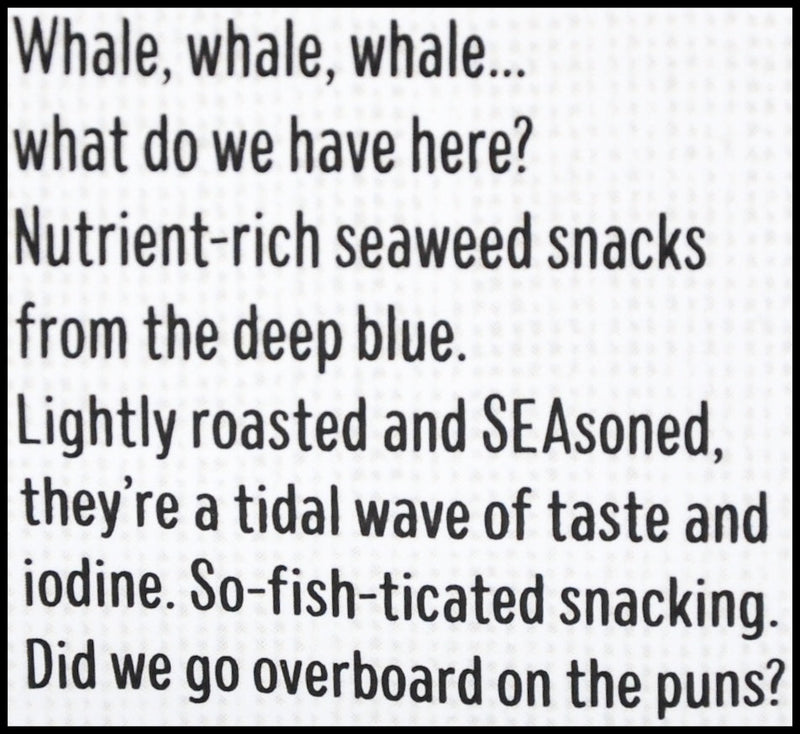 - Lightly roasted and seasoned, they’re a tidal wave of taste and iodine.