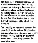 Sundried tomatoes may also be preserved in olive oil, along with other ingredients such as rosemary, basil, tomatoes, dried paprika and garlic.