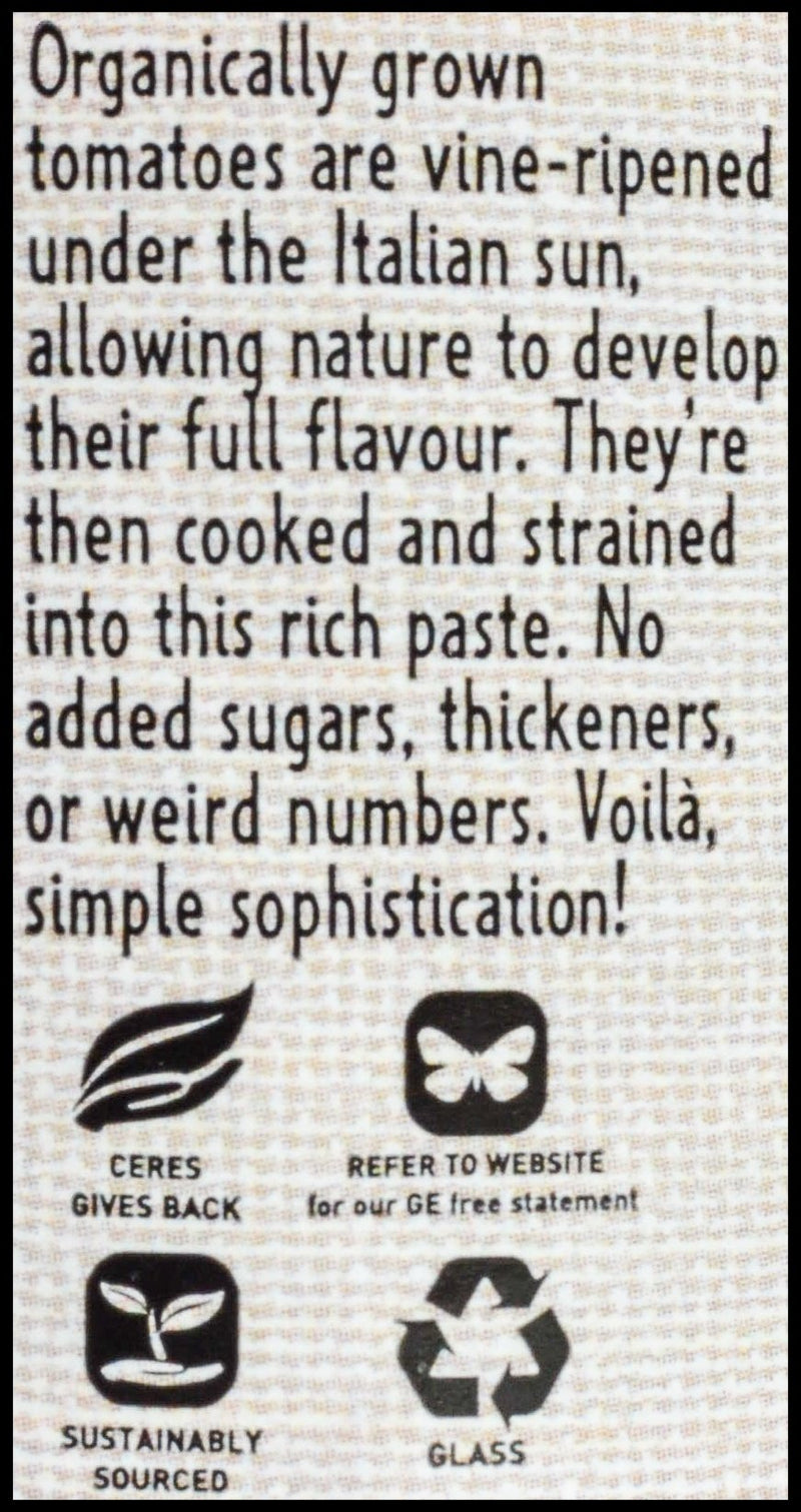 - Made from organically grown tomatoes which are vine-ripened under the Italian sun, allowing nature to develop their full flavor.