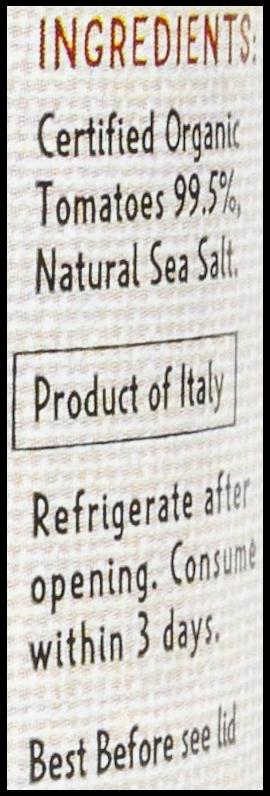 Certified Organic Tomatoes, Natural Sea Salt.