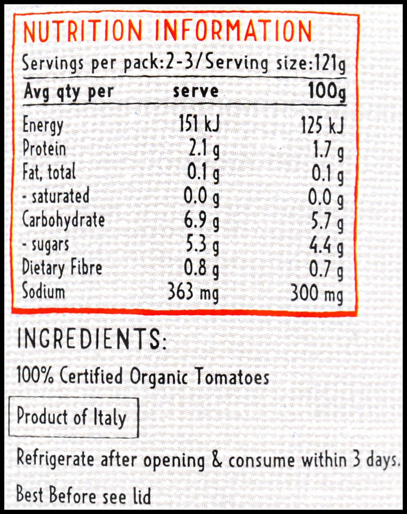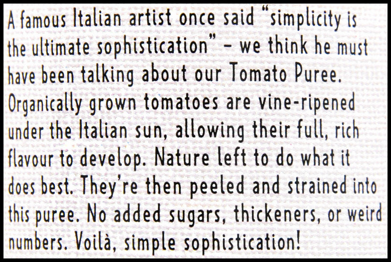 - A famous Italian artist once said “simplicity is the ultimate sophistication” – we think he must have been talking about our Tomato Puree. Organically grown tomatoes are vine-ripened under the Italian sun, allowing nature to develop their full flavor. They are then cooked and strained into this rich puree.