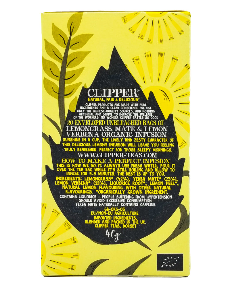 Clipper Organic Tea - Rise & Shine - Lemongrass Mae, Lemon Verbena (20 bags)