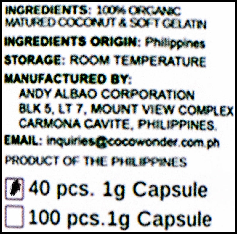 CocoWonder Organic Coconut MCT Oil Encapsulated 1000mg (40 caps)