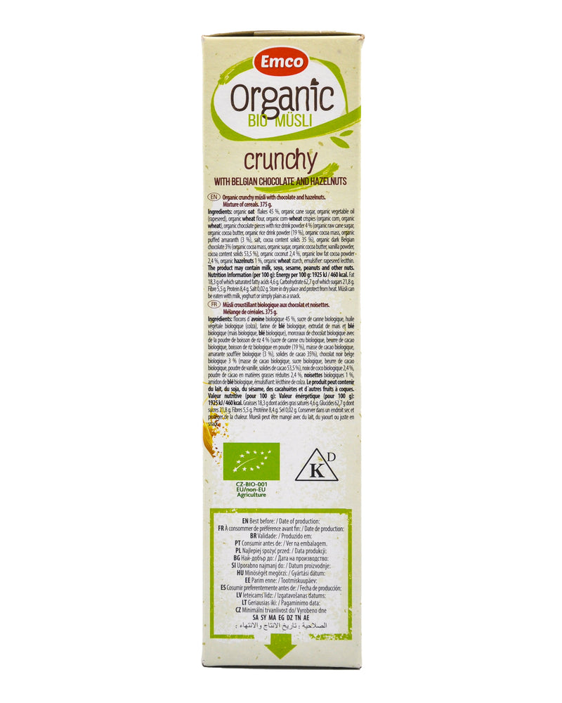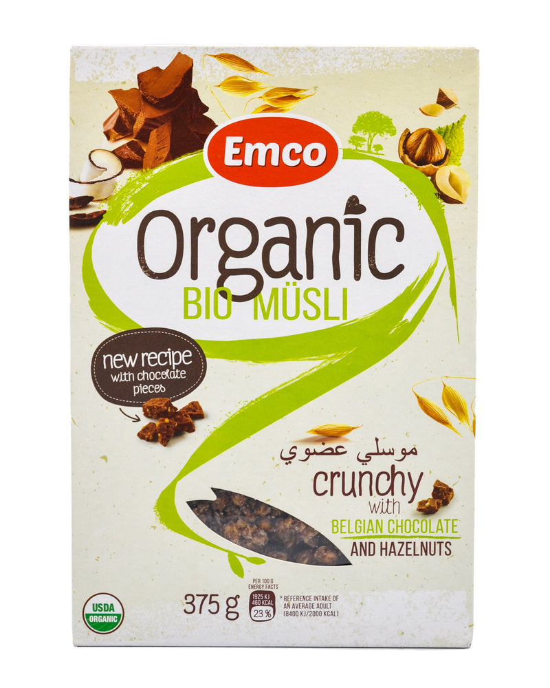 Emco Organic Bio Muesli - Crunchy w/ Belgian Chocolate & Hazelnuts (375g)