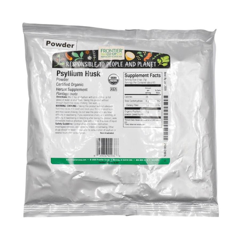 Frontier® Organic Psyllium Husk Powder also works well for baking, encapsulating and making herbal preparations.