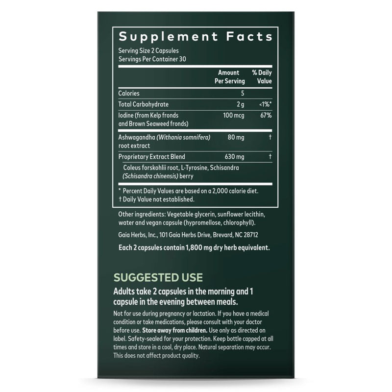 - With Ashwagandha, Seaweed, Kelp, and Schisandra.