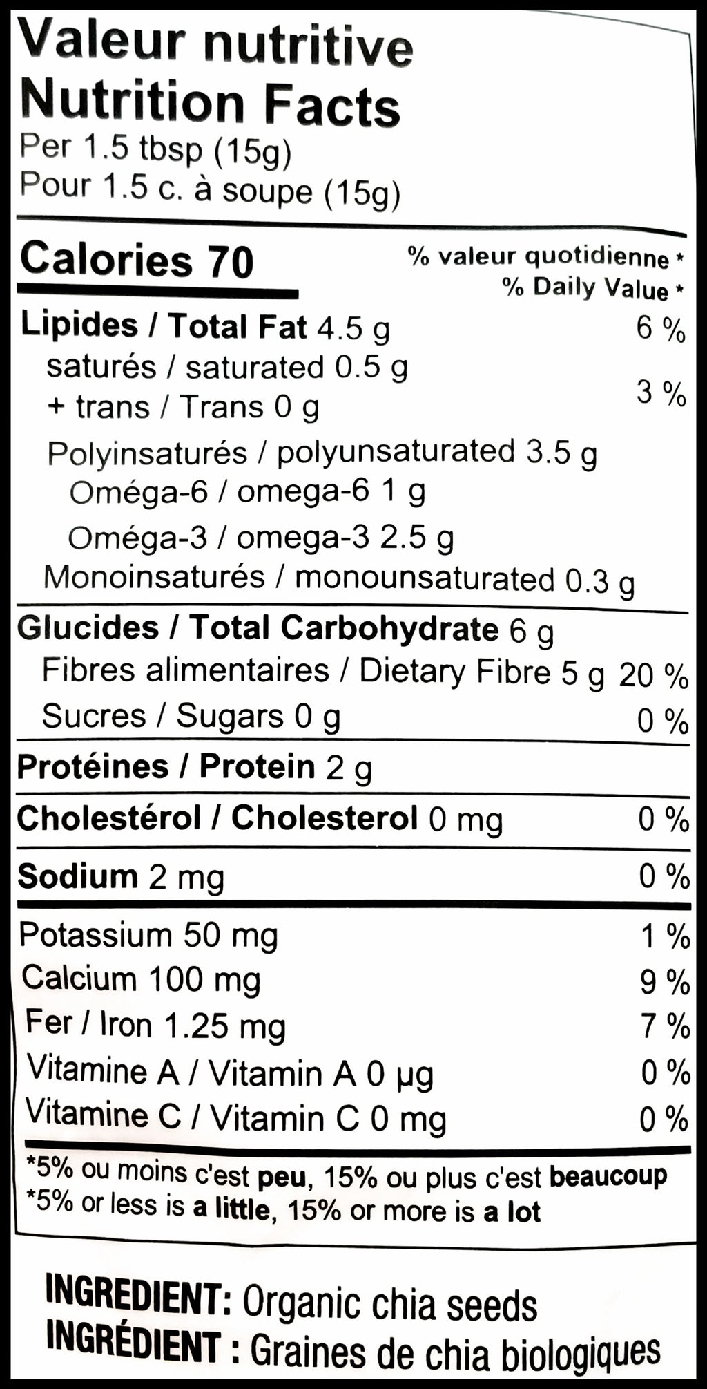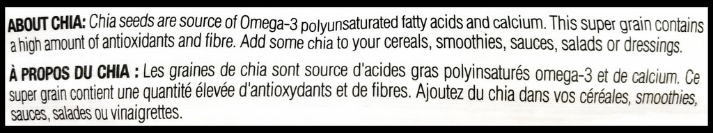 • Chia seeds are source of Omega-3 polyunsaturated fatty acids and calcium. This superfood contains a high amount of antioxIdants and fibers.