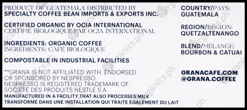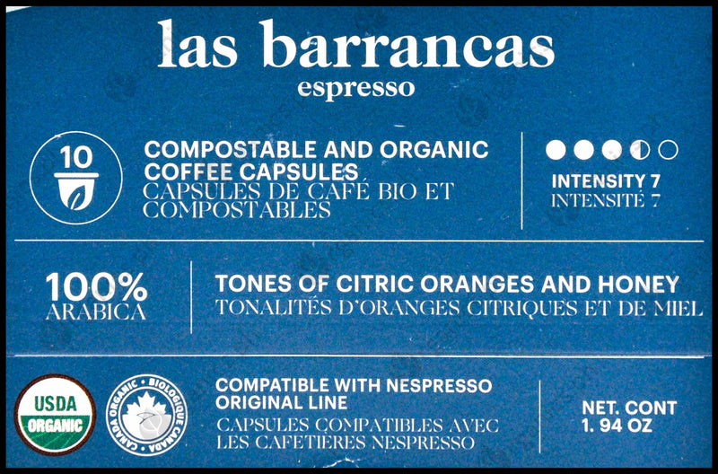 Grana Organic Nespresso Coffee Capsules - Las Barrancas Espresso (10 capsules)