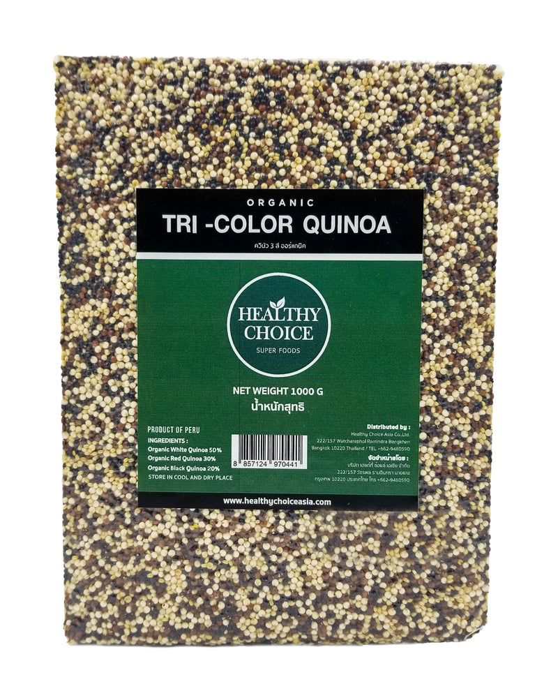 - Tri-color quinoa is a delightful blend of white, red, and black quinoa. It is loaded with all 9 essential amino acids and contains almost twice as much dietary fibers as other grains. It has a mild, delicate flavor that is slightly nutty, making it a great addition to many vegetarian recipes.