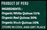 Organic White Quinoa, Organic Red Quinoa, Organic Black Quinoa.