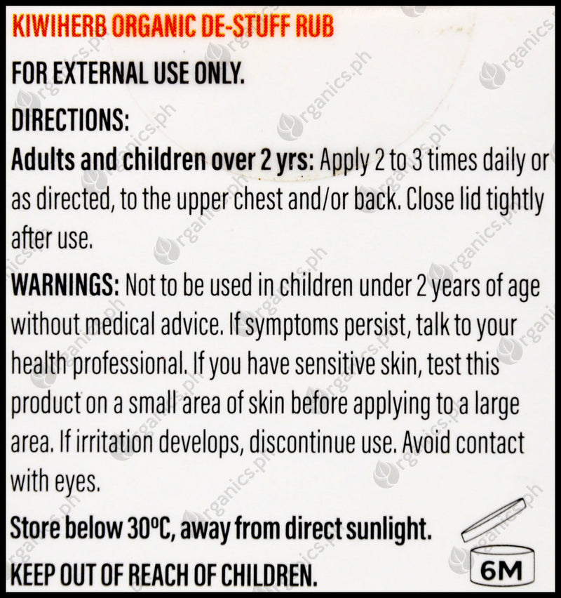 Kiwiherb Organic Herbal Supplements - De-Stuff Rub (2 years+) (28g)