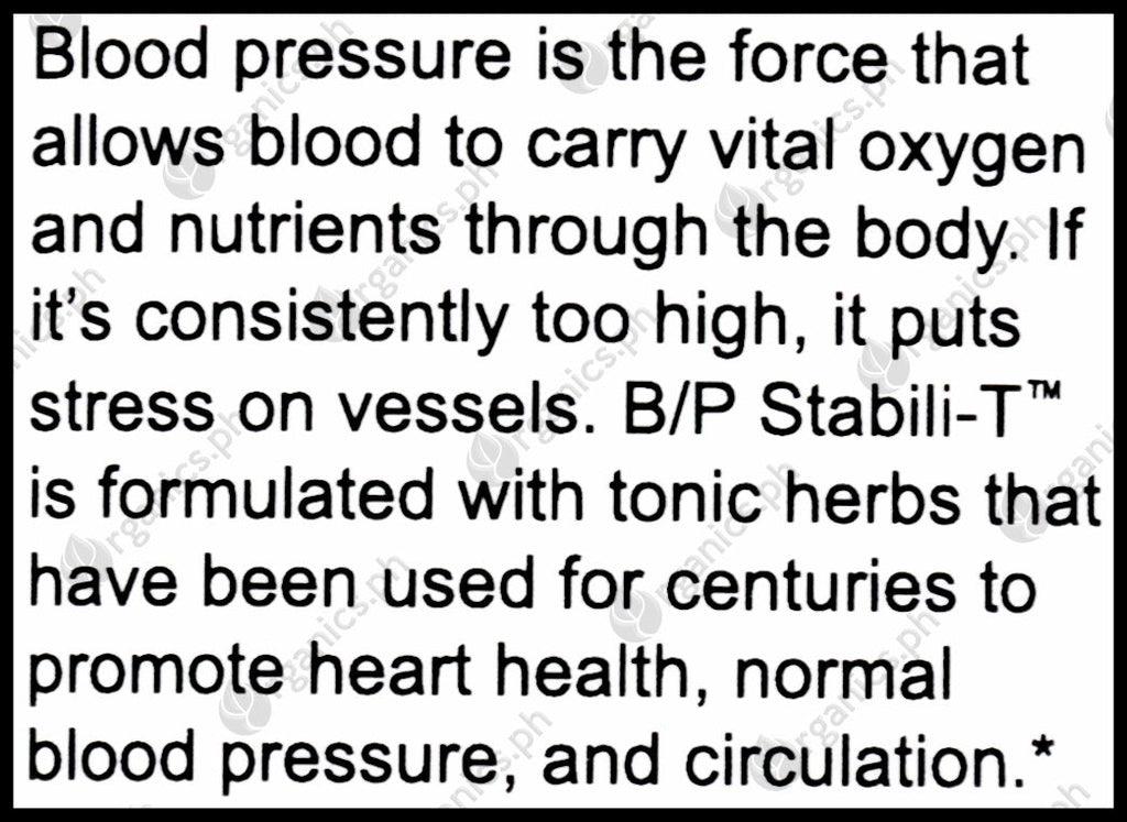 - B/P Stabili-T (formerly Hyper-T) helps to promote healthy blood circulation and normal blood pressure. It helps protect against the formation of plaque in the blood vessels, and it helps slow the circulation of stress hormones.