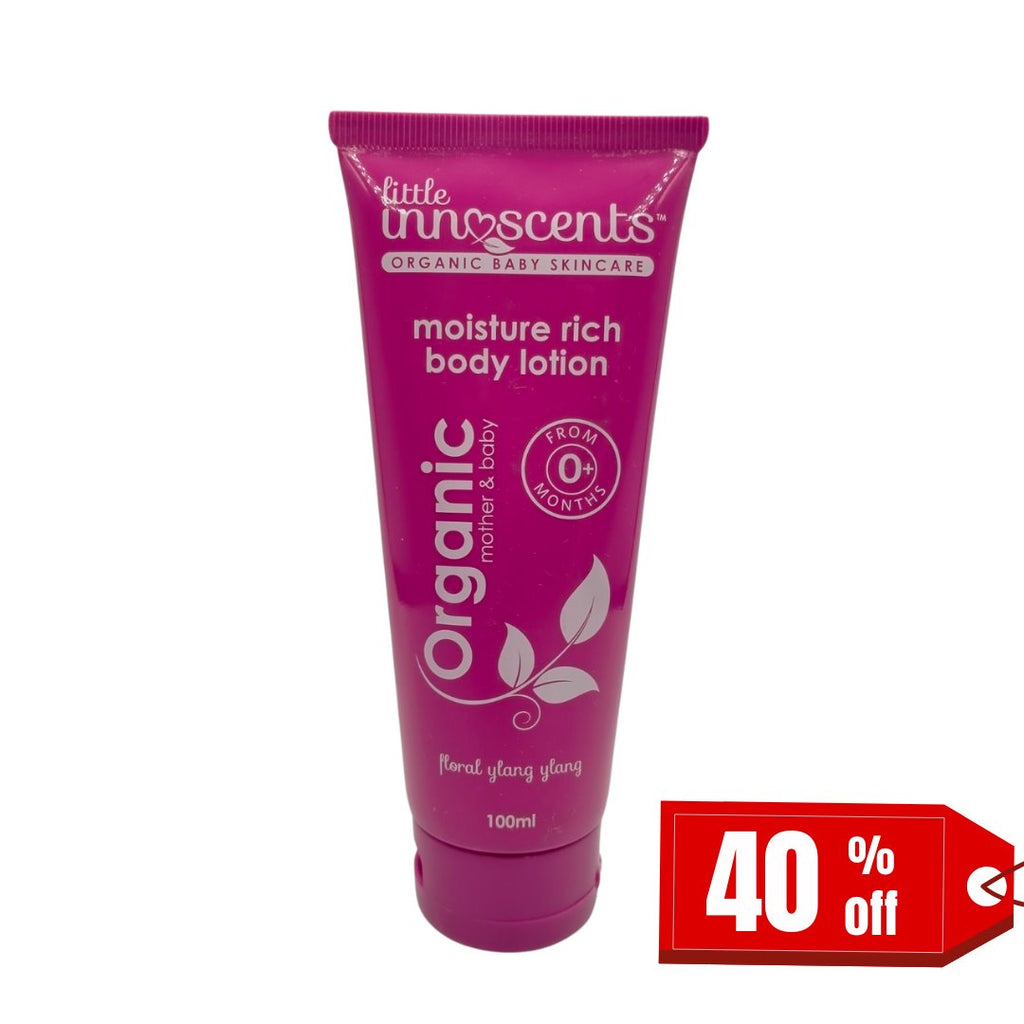 - Our Little Innoscents Moisture Rich Body Lotion is made with certified organic and natural ingredients and has a delicate floral Ylang Ylang scent.