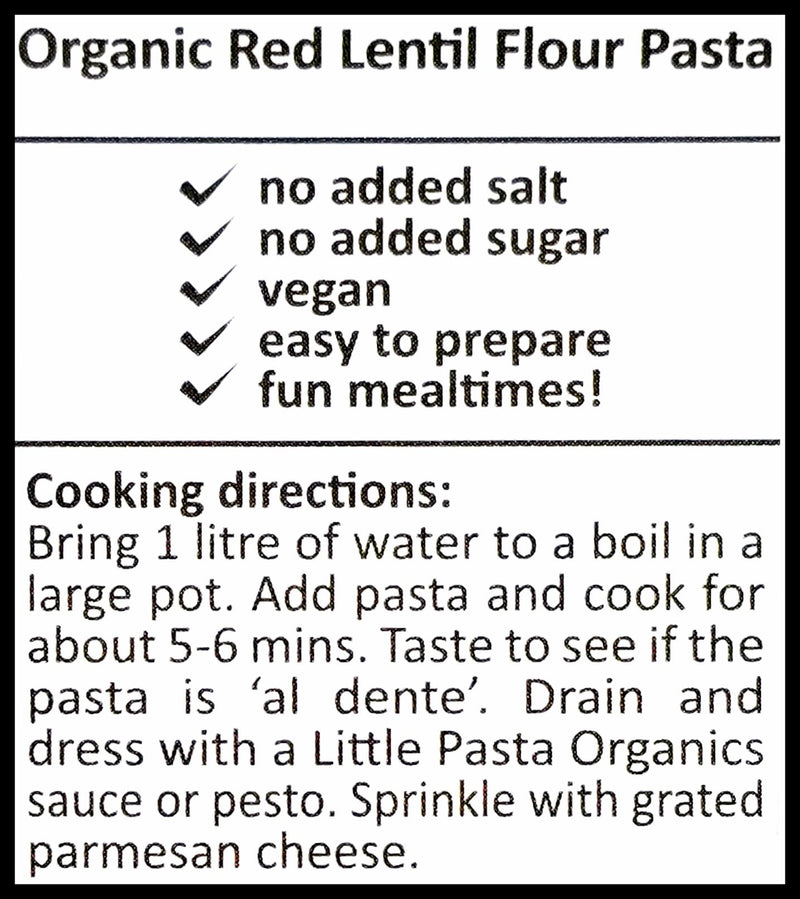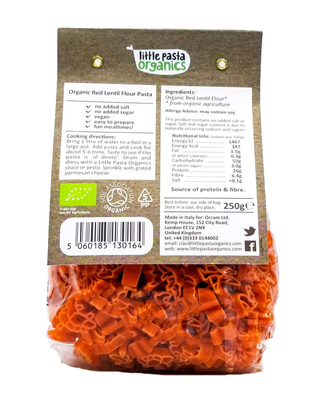- Our delicious vegan pasta is made from the finest organic red lentils. Blending healthy vegetables into our pasta ensures that your little ones eat up their reds with no fuss and make meal times fun!