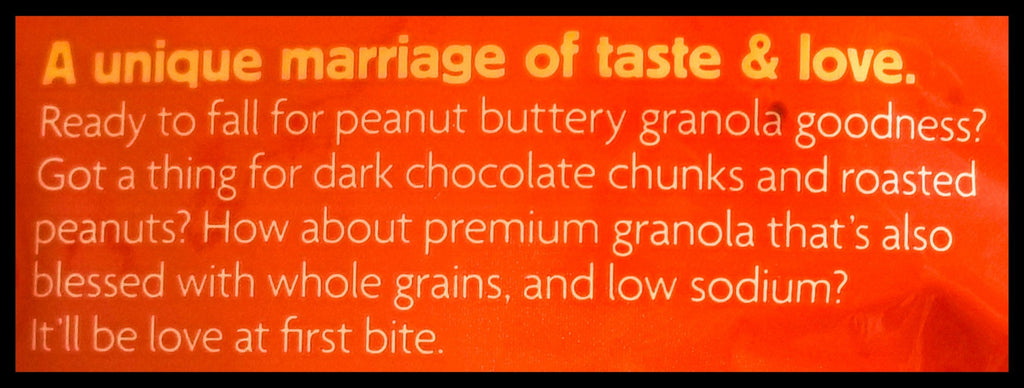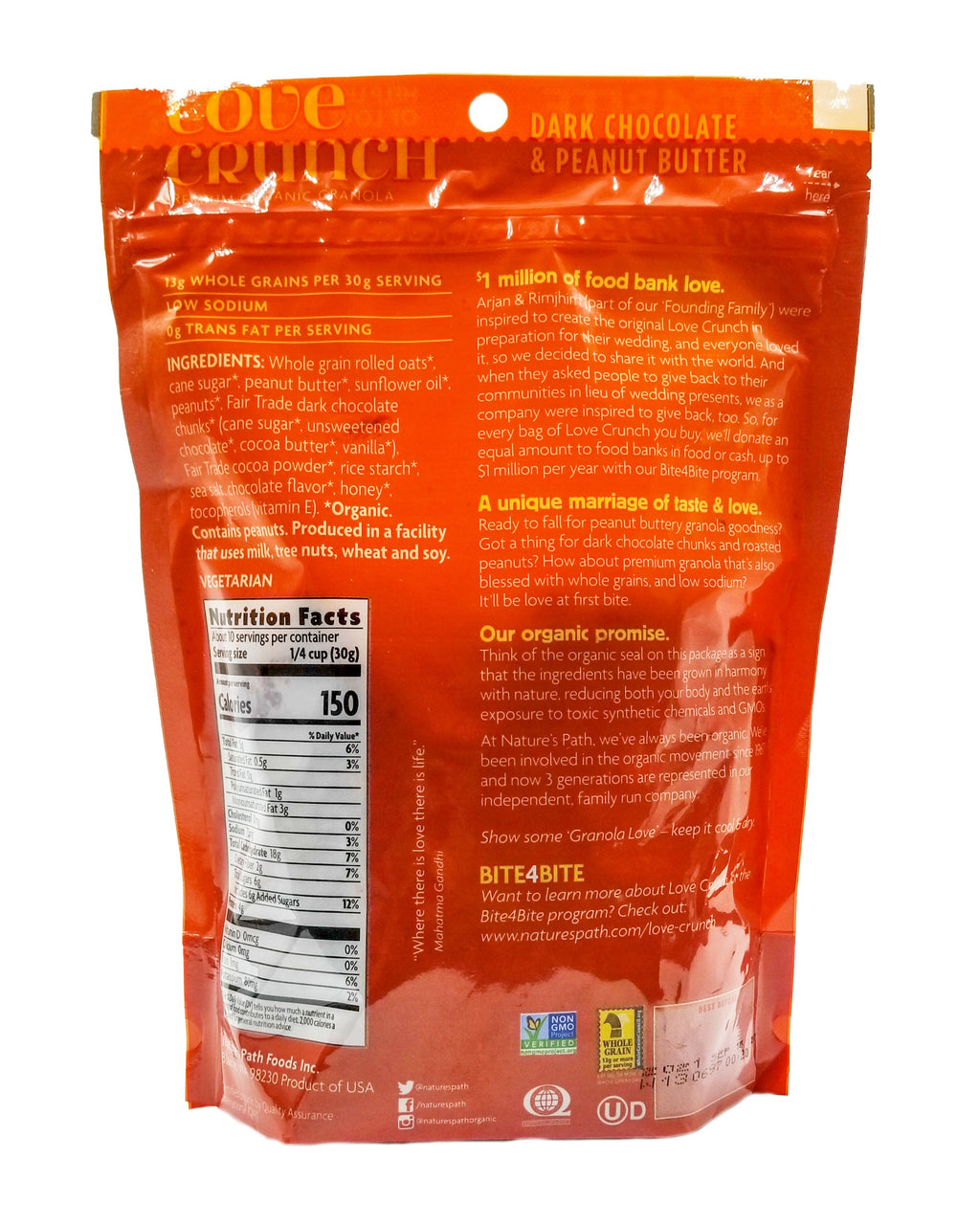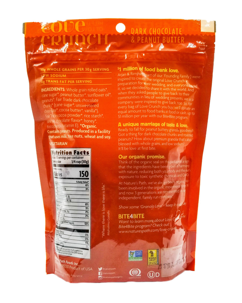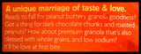 - You’ll love this delicious combination of crunchy granola clusters, creamy peanut butter, and decadent dark chocolate chunks. Organic, non-GMO, and vegan, it’s a guilt-free indulgence. It will be love at first bite!