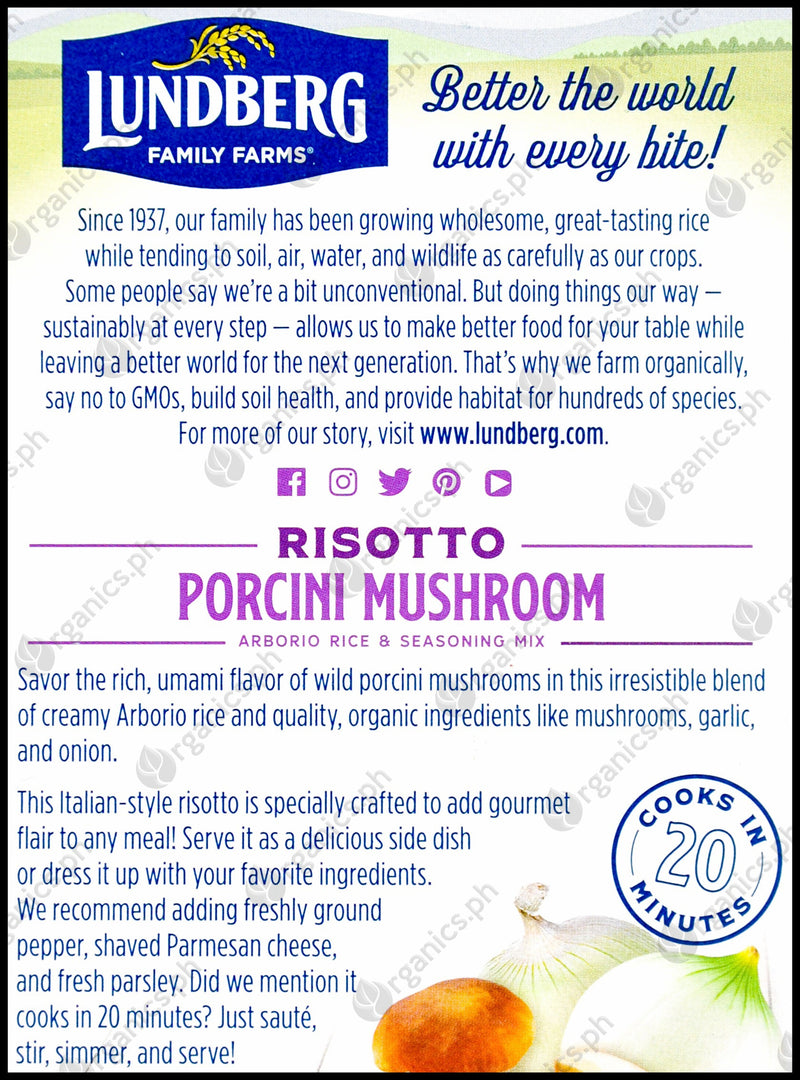 - Savor the rich, umami flavor of wild porcini mushrooms in this irresistible blend of creamy Arborio rice and quality, organic ingredients like mushrooms, garlic, and onion.
