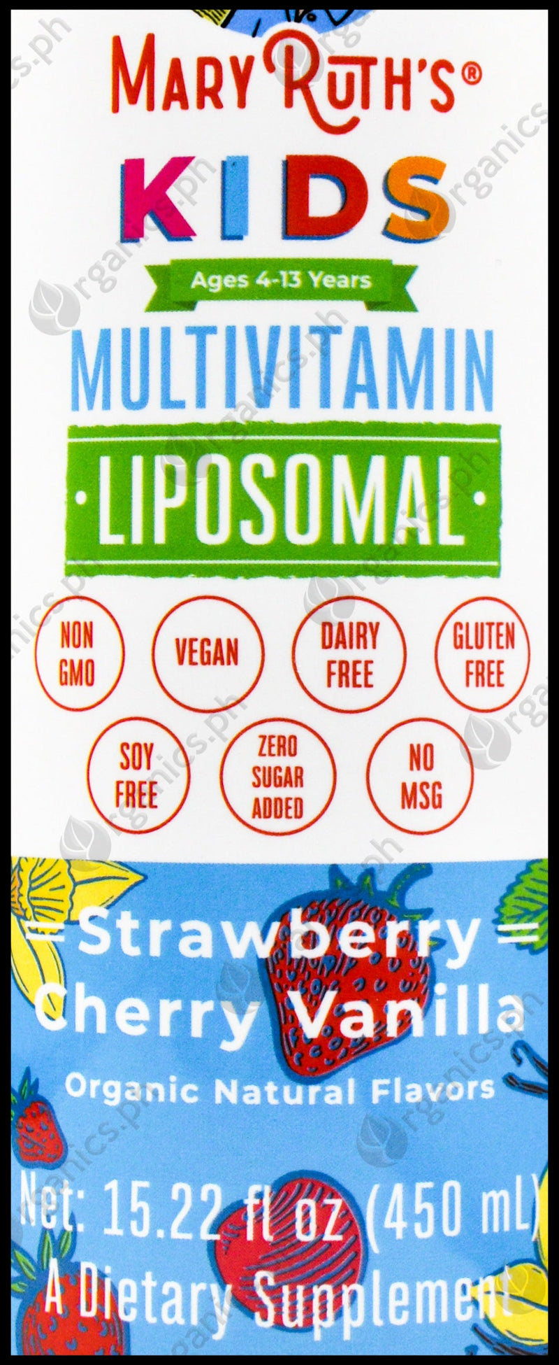 Mary Ruth's Organic Kids Multivitamin Liposomal (Ages 4-13 Years) - Strawberry Cherry Vanilla (450ml)