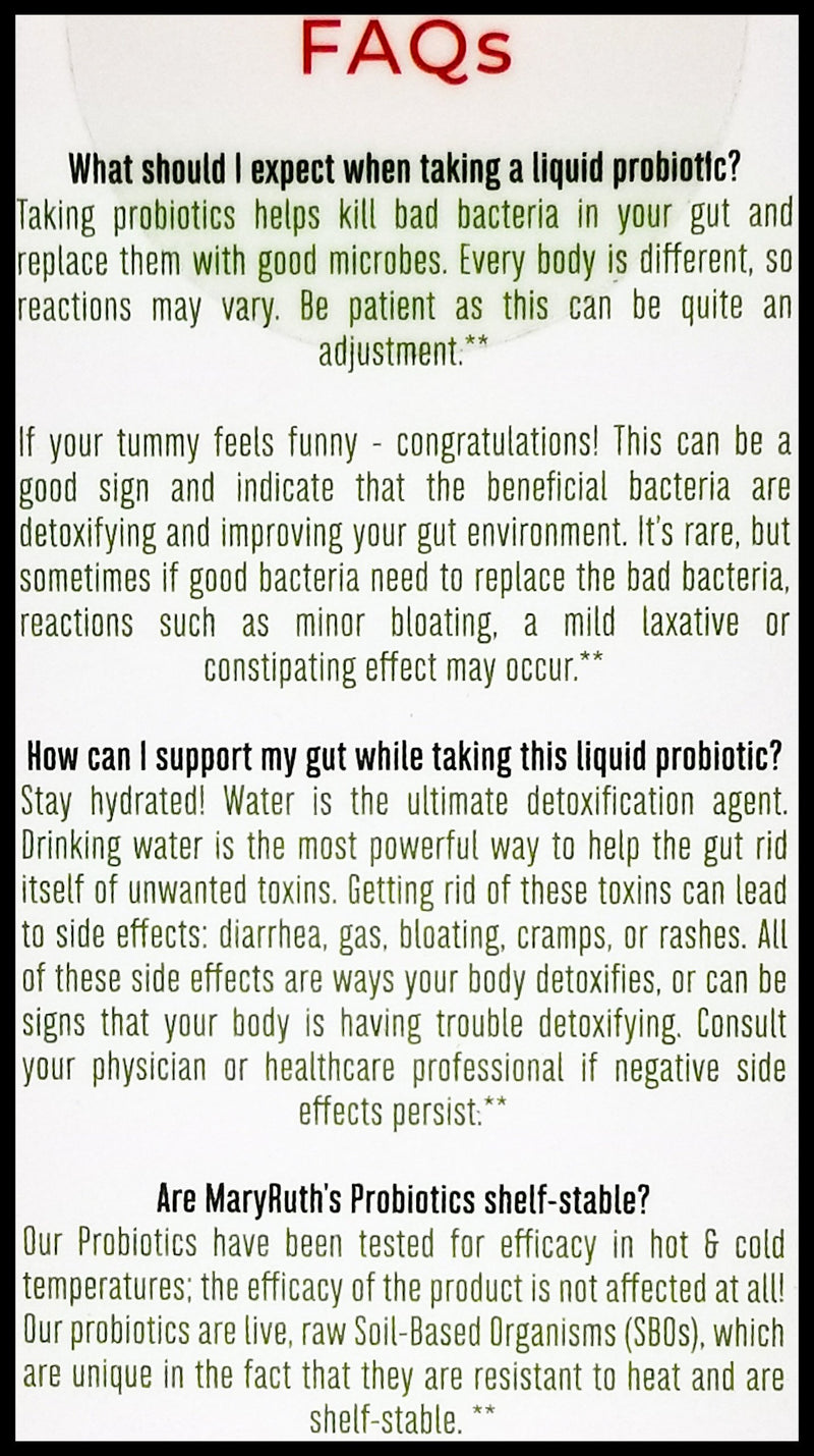 First time use: Take ½ dose, preferably with food or liquids. Gradually increase dose as you see fit. Many feel the powerful cleansing effect of the probiotic. This is normal and to be expected when you introduce beneficial bacteria to your digestive system.