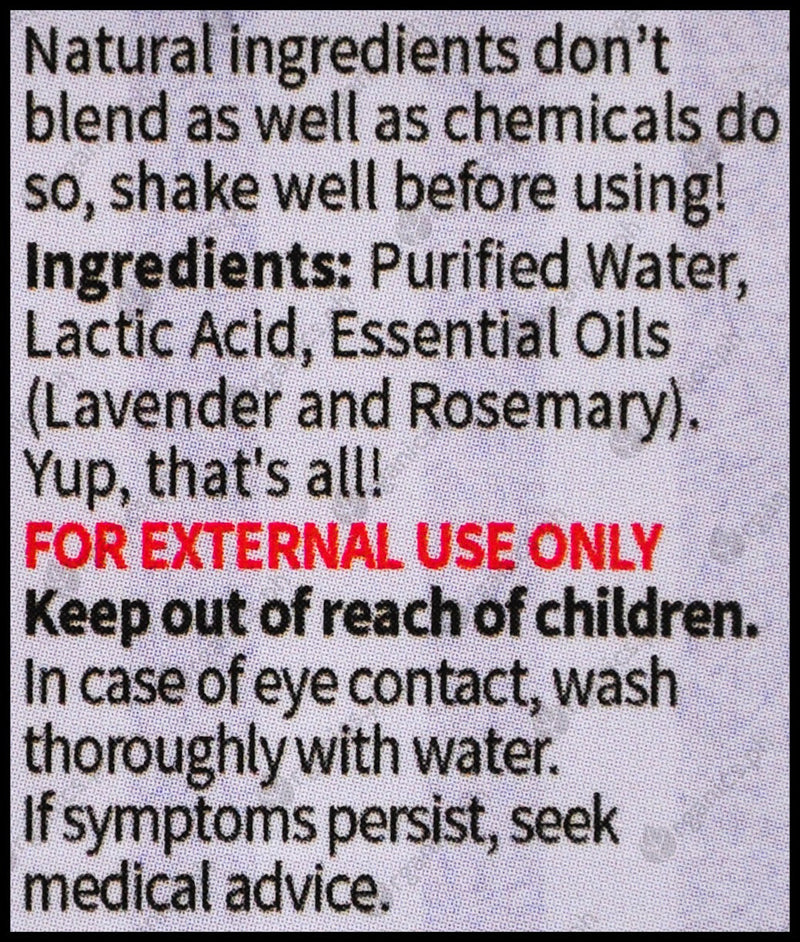 - An anti-fungal, antiseptic, and antibacterial spray that deodorizes and disinfects your room and linens.