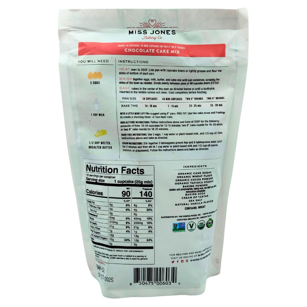 - Miss Jones' recipe for moist, cocoa-packed cake is deliciously dark, and BFFs with our rich, creamy Organic Chocolate Frosting. Whether you're layering up cakes or baking cupcakes for the crew this mix won't disappoint!