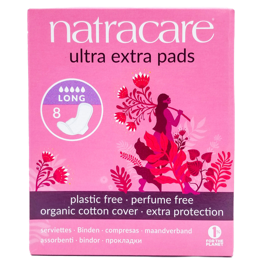 Natracare Organic Ultra Extra Sanitary Pads with Wings - Long (8 pads)
