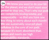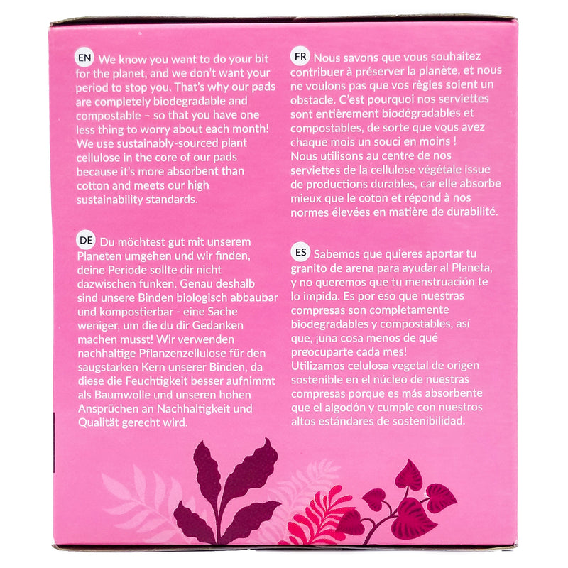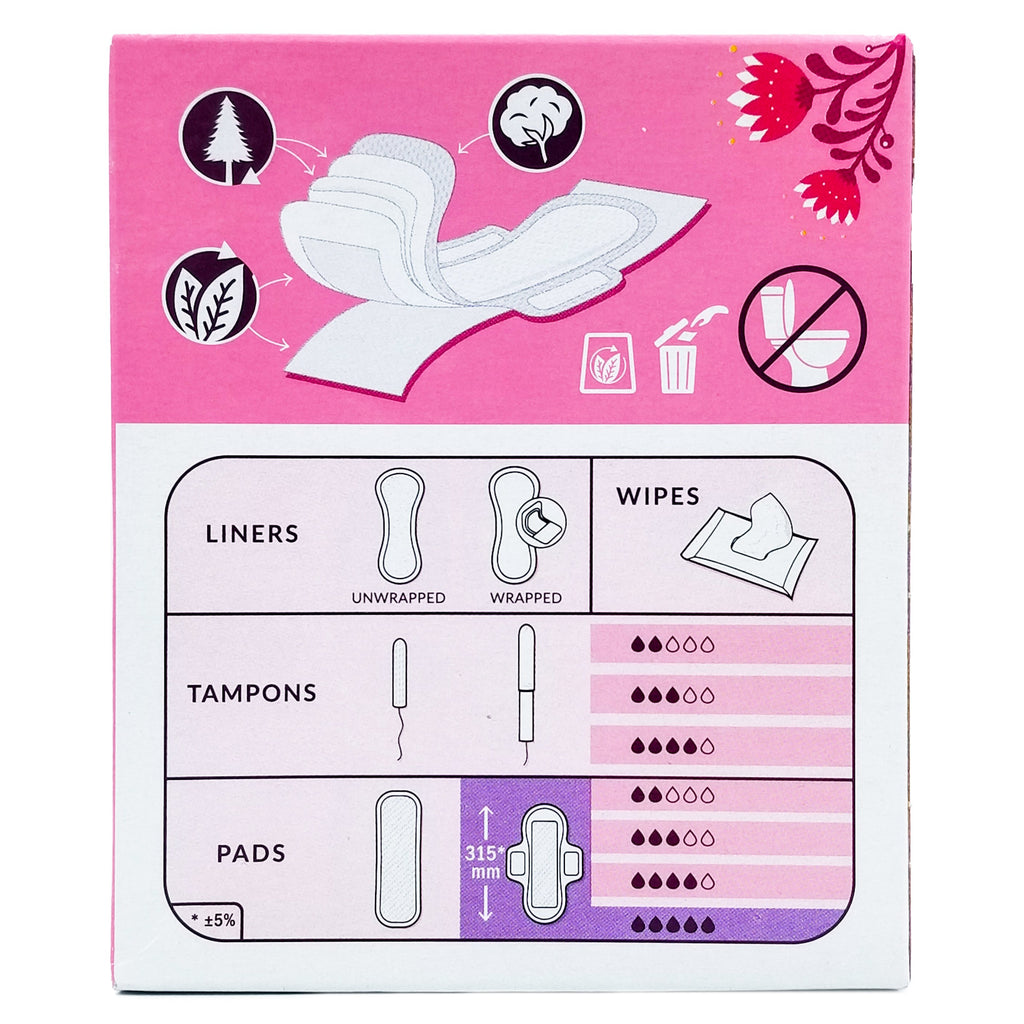 - Natural and absorbent pads for heavy periods or overnight, with an extra cushion layer and wings to secure the pad in place.